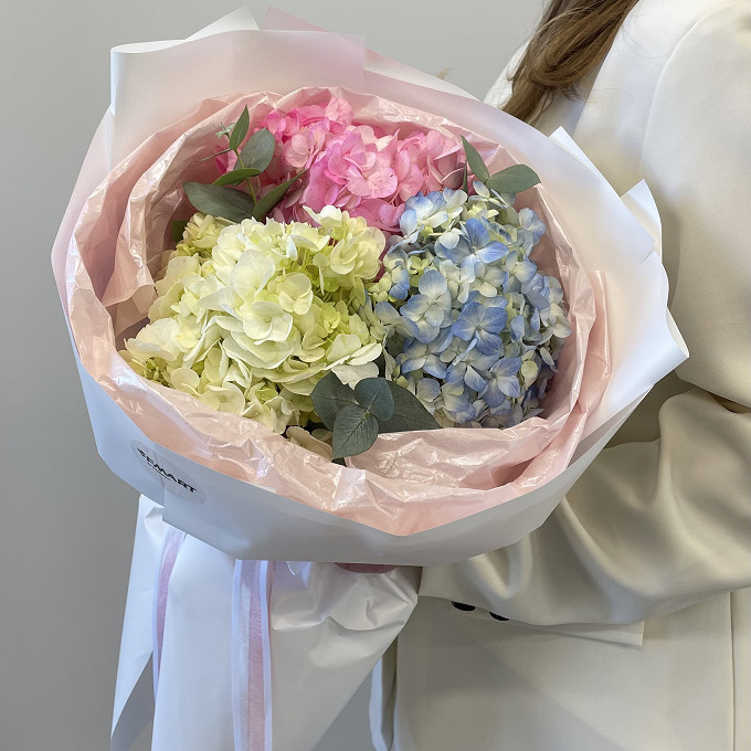 Букет из 3 разноцветных гортензий